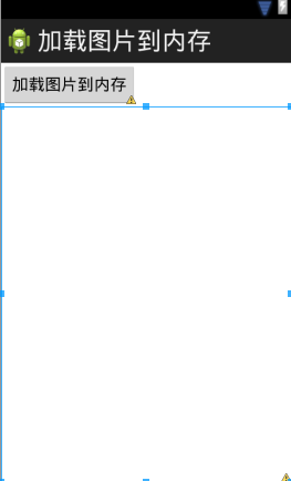 <LinearLayout xmlns:android="http://schemas.android.com/apk/res/android" xmlns:tools="http://schemas.android.com/tools" android:layout_width="match_parent" android:layout_height="match_parent" android:orientation="vertical" tools:context=".MainActivity" > <Button android:layout_width="wrap_content" android:layout_height="wrap_content" android:onClick="load" android:text="加载图片到内存" /> <ImageView android:id="@+id/iv" android:layout_width="fill_parent" android:layout_height="fill_parent" /> </LinearLayout>