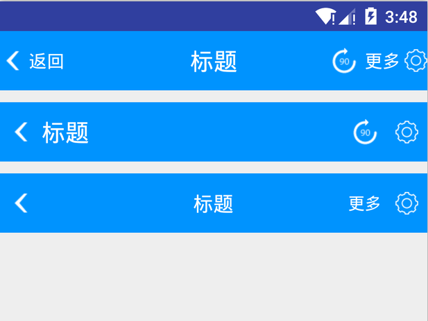 <com.jarek.library.TitleView android:id="@+id/title_main" android:layout_width="match_parent" android:background="#0093fe" title:title_name="标题" title:right_text="@string/more" title:title_text_color="@android:color/white" title:right_image_two="@mipmap/icon_crop_rotate" title:title_text_size="20sp" title:small_text_size="15sp" title:left_text="返回" title:left_text_drawable_left="@mipmap/back_normal" title:right_text_drawable_right="@mipmap/bar_button_right" android:layout_height="50dp"/>