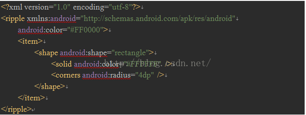 第一个color是波纹颜色,item里面指定background正常的颜色,可以是一个shape,也可以是一个drawable,还可以是一个selector。