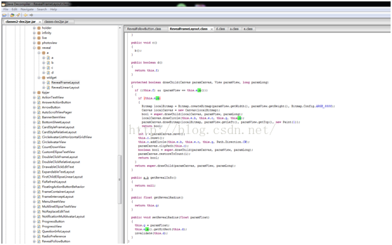 知乎用了multidex,所以会有两个class文件,都拖出来放在dex2jar里反编译一下,就能生成两个jar包了,把jar包放在GUI里看一下,就能看到代码了,虽然代码被混淆过,但是基本逻辑还是能看出来的。