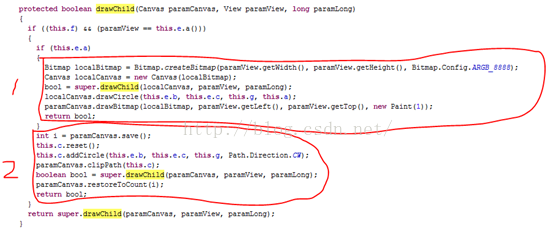 RevealFollowButton的drawChild方法没什么内容,基本是调用了父类,那么我们来看RevealFrameLayout的drawChild方法。