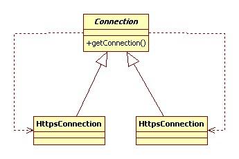 其中Connection这个抽象类,既充当抽象产品类,也充当具体工厂类。
