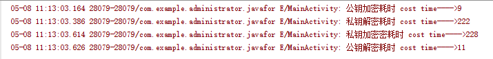 Log.e("MainActivity","私钥加密密耗时 cost time---->"+(end-start));
