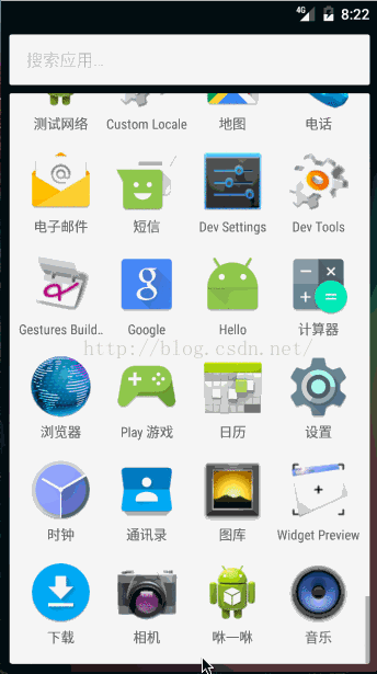 开始讲解实现之前我们先分析一下支付宝的咻一咻效果,进入支付宝咻一咻页面后点击了咻一咻按钮,屏幕上先出现一个圆在不断的进行放大操作,在该圆进行放大操作的同时其透明度也在由大到小进行变化,接着该圆没有消失之前又会出现新的圆也在进行同样的动画操作……通过观察我们发现这些圆都是按照固定的时间间隔在依次的执行放大和透明度渐变的动画操作,所以要实现同样的效果,首先要有一个ViewGroup,然后给这个ViewGroup添加固定数量的子View,最后让这些子View执行放大和透明度渐变动画就可以实现该效果了。清楚了这个大纲流程,实现起来就好办了。