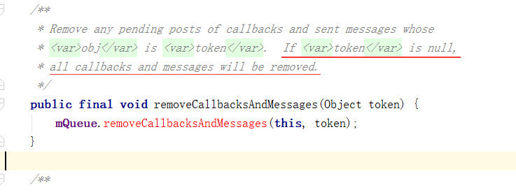 //如果参数为null的话,会将所有的Callbacks和Messages全部清除掉。