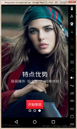 二、向导页面GuideActivity.class的实现,用ViewPager来实现。 (默认第一次进入APP的,不然开始页面就不会跳转到向导页面了)如果有对ViewPager不熟悉的,也可以查一下Android API帮助文档,地址:http://android-doc.com/reference/android/support/v4/view/ViewPager.html
