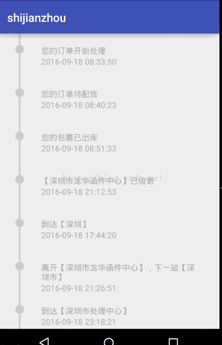 以上所述是小编给大家介绍的Android控件之使用ListView实现时间轴效果,希望对大家有所帮助,如果大家有任何疑问请给我留言,小编会及时回复大家的。在此也非常感谢大家对脚本之家网站的支持!