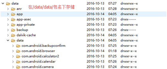 以I/O流的形式把数据存入手机内存或SD卡,可以存储大数据,如音乐、图片或视频等。对于手机内存来说系统会根据每个应用的包名创建一个/data/data/包名/的文件夹,访问自己包名下的目录是不需要权限的,并且 Android 已经提供了非常简便的 API 可以直接去访问该文件夹。访问时可以用getFilesDir()和getCacheDir(),两个的区别是系统会自动清理后者中的内容。