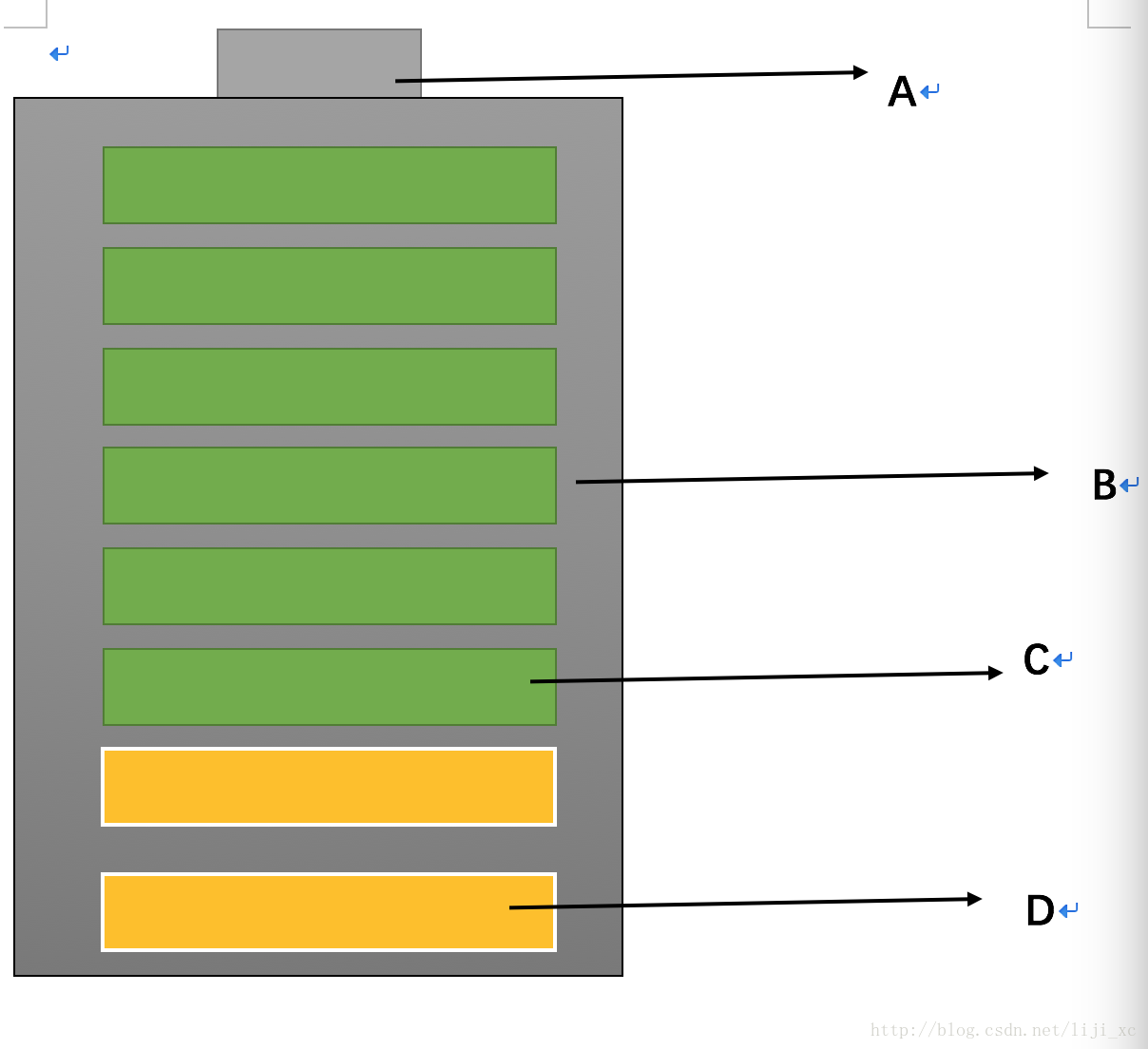 对于这个充电进度view,我将它分成了ABCD四个部分,下面来详细说明各个部分的组成。