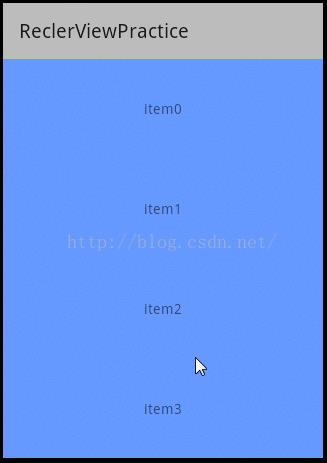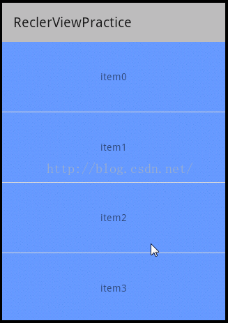 实例:接着来几个小的实例帮助大家更深入的了解RecyclerView的用法,首先来实现一个最简单的列表,效果如下