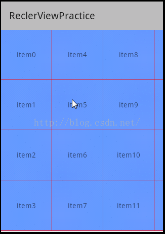 别忘了更改分隔线recyclerView .addItemDecoration(new DividerGridItemDecoration(this ));之后运行发现效果如下