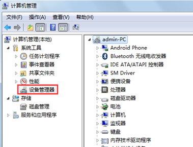 右键点击“我的电脑”,选择“管理”,然后点击左侧的“设备管理器”。