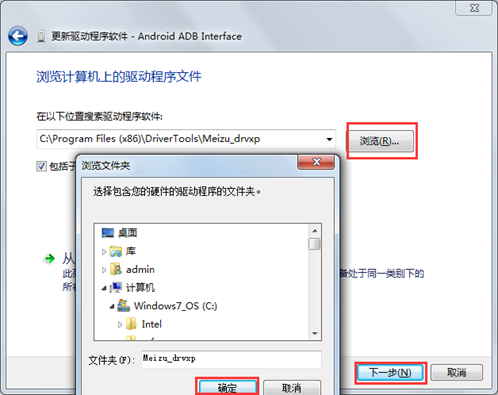 浏览并选择刚才我们下载的驱动程序路径,确定后,点击下一步就可以自动安装驱动程序了。