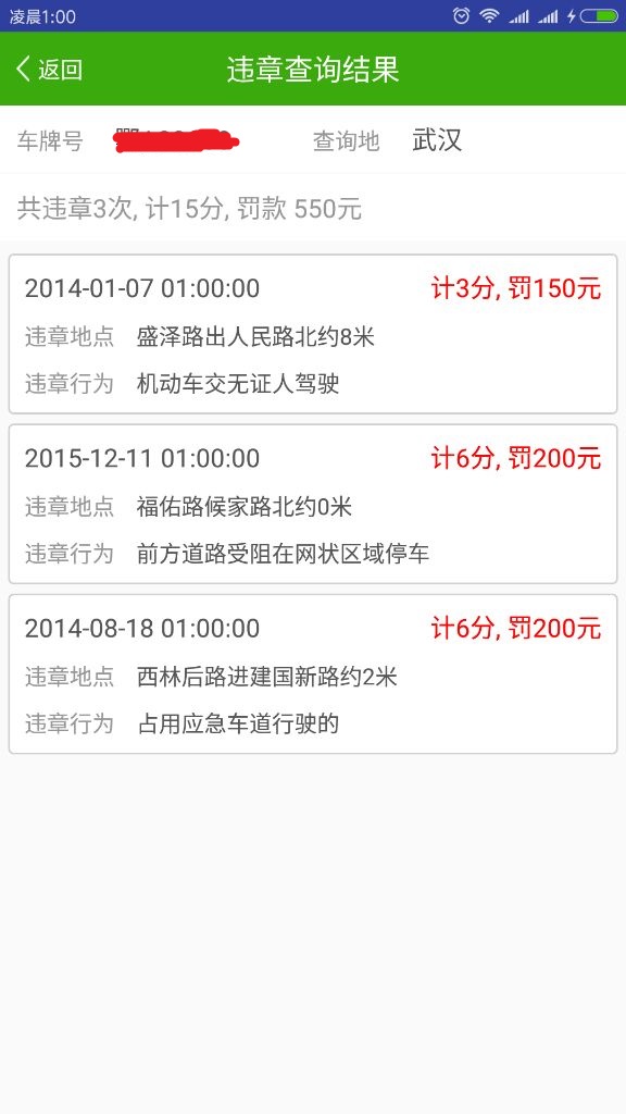 2.查询结果1 (有违章的信息)