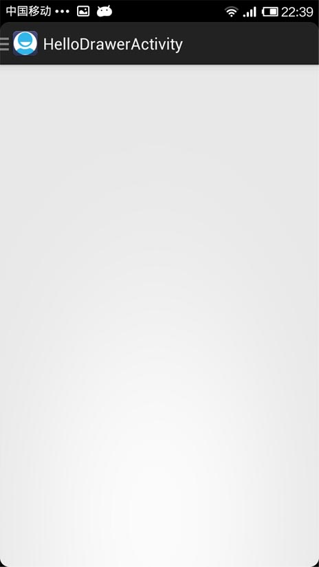 DrawerLayout的第一个子元素是主要内容,即抽屉没有打开时显示的布局。这里采用了一个FrameLayout,里面什么也没放。