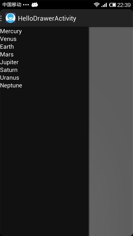 DrawerLayout的第二个子元素是抽屉中的内容,即抽屉布局,这里采用了一个ListView。