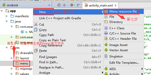 第一步:建立menu资源文件