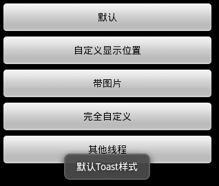 Toast.makeText(getApplicationContext(), "默认Toast样式",