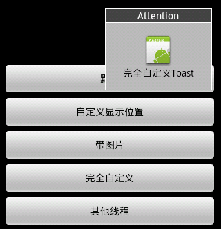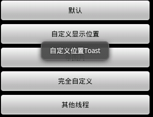 toast = Toast.makeText(getApplicationContext(), "自定义位置Toast",