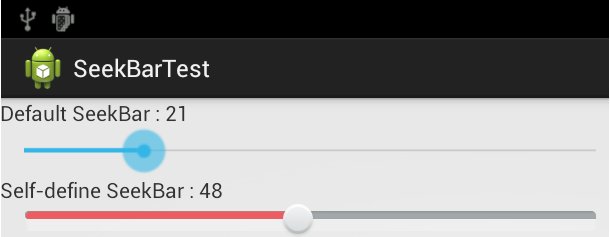第2个SeekBar是自定义SeekBar,使用自定义的背景图和滑块图片。