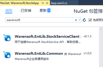 然后再分别安装Warensoft.EntLib.Common,Warensoft.EntLib.StockServiceClient,如下图所示: