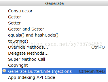 使用时,在要导入注解的Activity 或 Fragment 或 ViewHolder的layout资源代码上,右键——>Generate——Generate ButterKnife Injections。