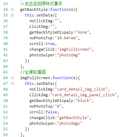 这里可以看到全屏状态下当关闭按钮被点击后 getBackStyle,把 changeClick 切换到 imgFullScrenn 待命。