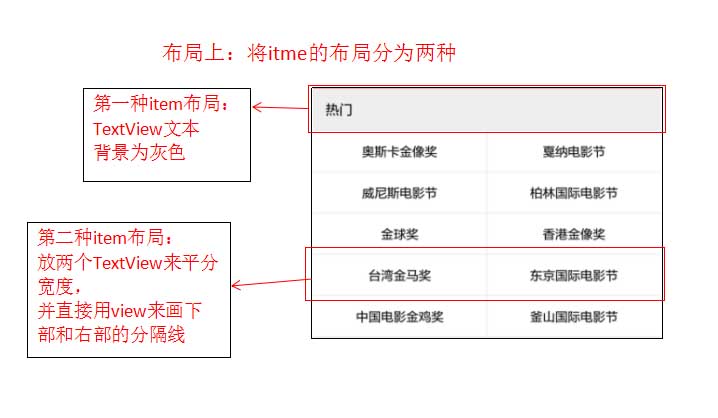 刚看到这个效果时,首先想到的是使用分类型的RecyclerView 或者 ListView ,里面再嵌套GridView来实现。