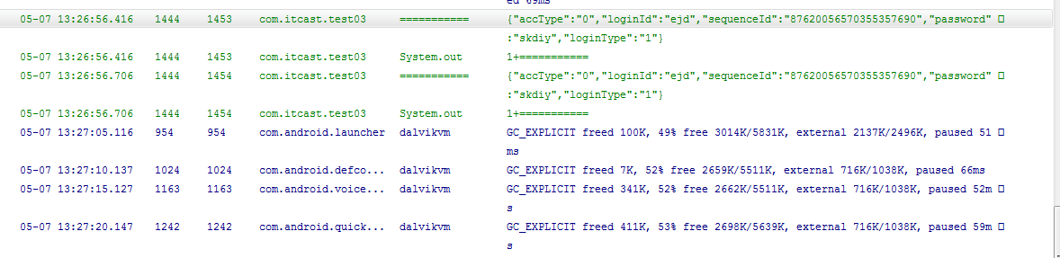 下面是我写的代码以及本程序的logcat的运行结果。