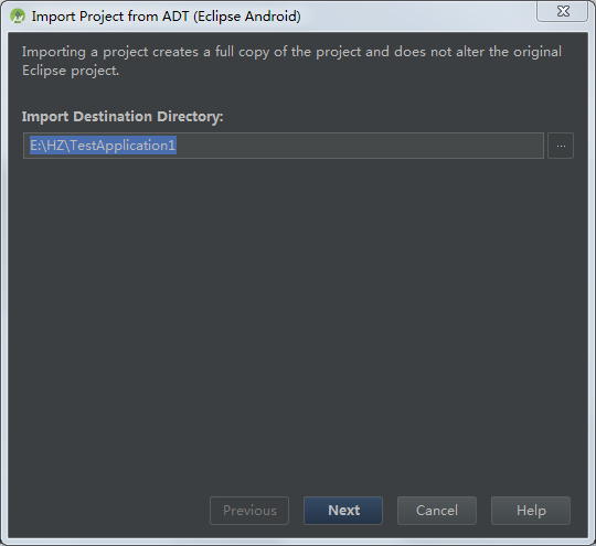 点击"OK"以后,选择导入的目标文件夹,默认的是相同的目录下,相同的项目名称后面跟了一个"1",实际上是新建了一个目录: