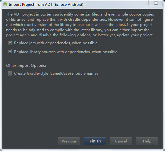 选择Import project (Eclipse ADT, Gradle, etc.),然后再选择要导入的Eclipse项目: