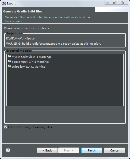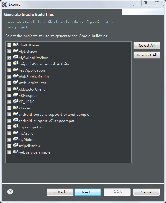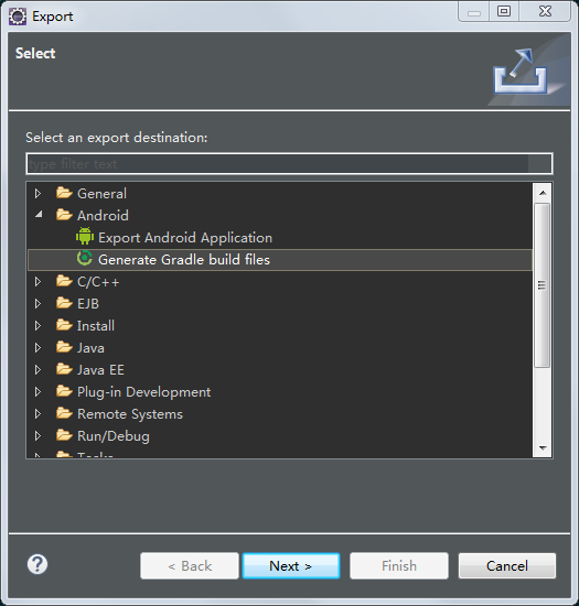 首先在Eclipse里面选择File->Export,选中"Generate Gradle build files":
