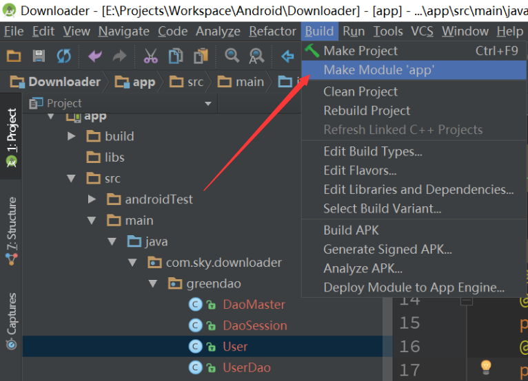 当我们编写好实体类并添加自己需要的注解之后,点击Make Project或者Make Module 'app',就会项目的build目录下或者自己设定的目录下看到生成的三个类文件: