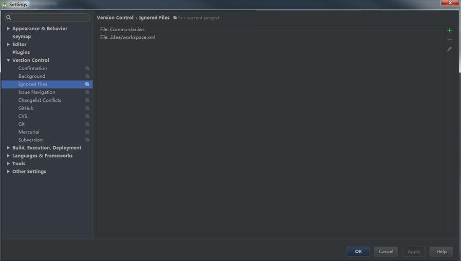 Android Studio 配合SVN时,添加忽略文件相对简单,首先打开项目的Settings选项,切换到Version Control下的Ignored Files目录,如下图: