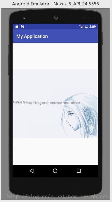 Bitmap bitmap = createWatermark(bmp, "叶应是叶" + "http://blog.csdn.net/new_one_object");