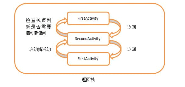 当活动的启动模式指定为singleTask,每次启动该活动时系统首先会在返回栈中检查是否存在该活动的实例,如果发现已经存在则直接使用该实例,并把在这个活动之上的所有活动统统出栈,如果没有发现就会创建一个新的活动实例。