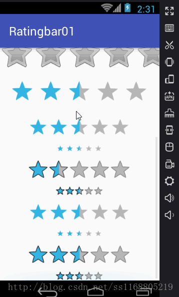 本文实例为大家分享了Android RatingBar星星评分效果的具体代码,供大家参考,具体内容如下