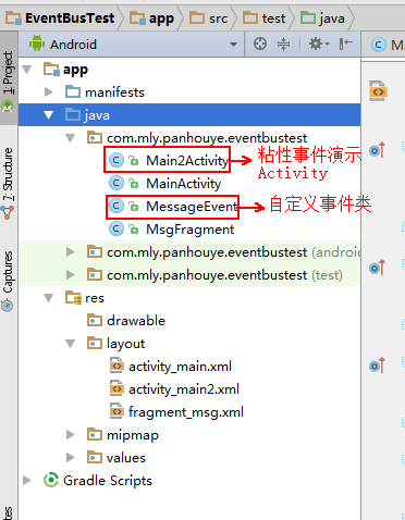 EventBus.getDefault().postSticky(new MessageEvent("粘性事件"));