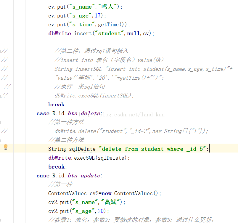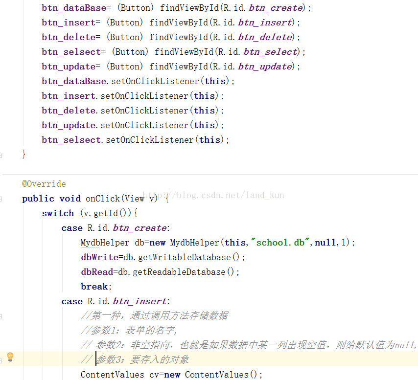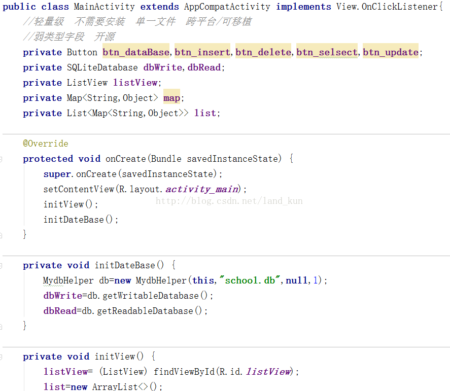 在Android开发中,有时我们需要对SQLite数据库进行增,删,查,找等操作,现在就来简单介绍一下,以下为详细代码。