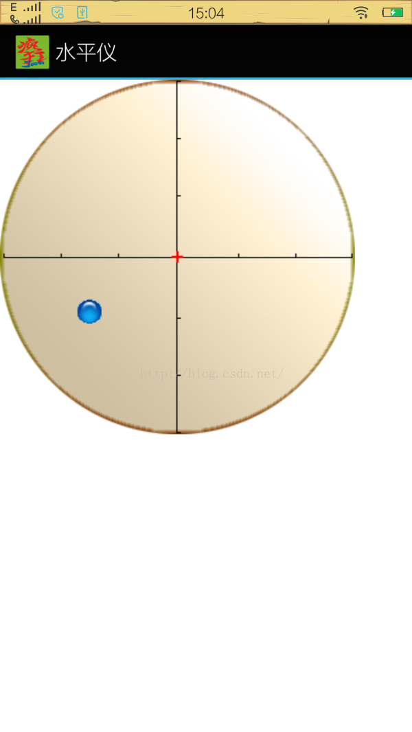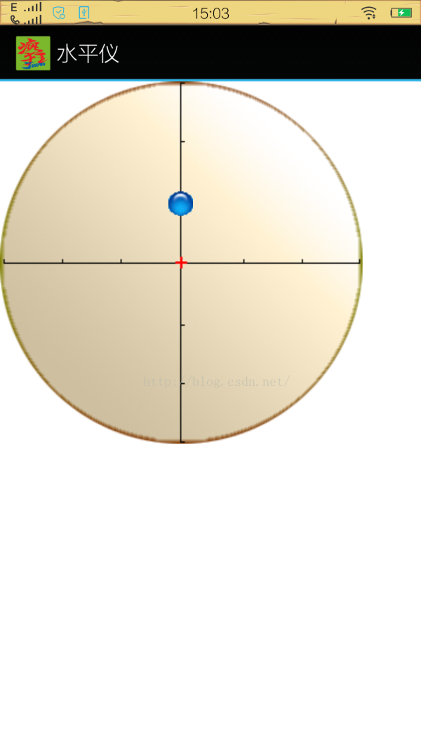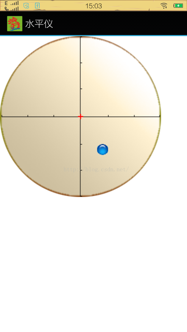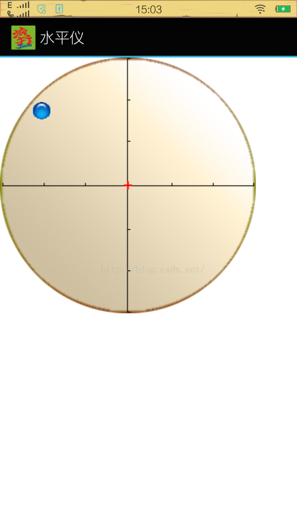 接下来,我们利用返回的第二、三个参数实现该水平仪。因为第二个参数,反映底部翘起的角度(当顶部翘起时为负值),第三个参数可以反映右侧翘起的角度(当左侧翘起时为负值)。根据这两个角度就可以开发水平仪,实现手机哪端翘起,气泡就浮向哪端,这也是水平仪的实现思想。本实例来自于《疯狂Android讲义》