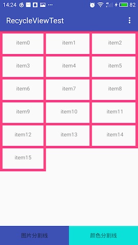 记录了下RecyclerView的使用方法,并且讲述了线性布局列表的使用方法,在此基础上加上了万能分割线,支持颜色分割线和图片分割线,同时支持对分割线设置线宽。