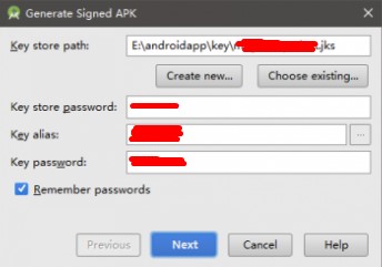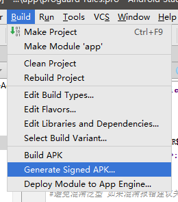 1、工具栏 Build->Generate Signed APK..