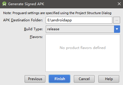 4、然后回到第一步,这时候点击按钮Next, Build Type选择release Finish即可,然后在 APK Destination Folder目录下就生成项目的apk包