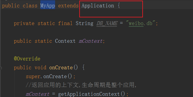 而MaApp继承的是全局的application这个类,所以在初始化时如果没有引用进来的话,就会报错,而我的那个清单文件中并没有引用进来所以报错了.把他加进来就好了: