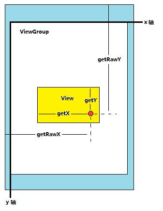 我们通过MotionEvent类中的getX()、getY()方法所获得的就是视图坐标系的坐标