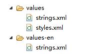 创建values-en文件夹,并创建英文版的strings.xml文件。