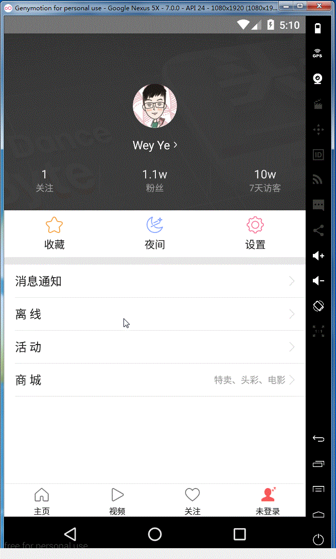 2,那下面我们就来实现一下,首先看一下布局,由于一般只是我们包含头像的那部分方法,所以这里我们要把布局分成两部分,对应的布局文件效果图如下: