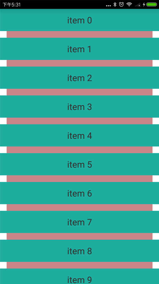 recyclerView.setLayoutManager(new LinearLayoutManager(this)); recyclerView.addItemDecoration(new CustomDecoration(this, CustomDecoration.VERTICAL_LIST, R.drawable.divider_love, UnitHelper.dip2px(this, 15))); recyclerView.setAdapter(adapter);