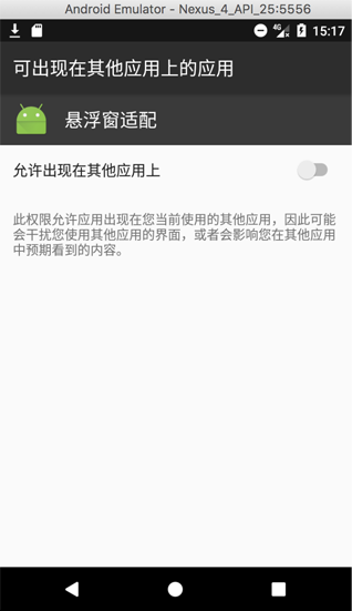 <uses-permission android:name="android.permission.SYSTEM_ALERT_WINDOW" />