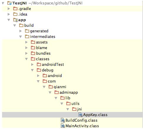 •2)查看TestJNI/app/build/intermediates/classes/debug/com…/AppKey.class